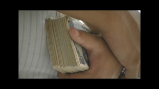 前記作品『30万円分の番号を控えた1000円札をお客さん…